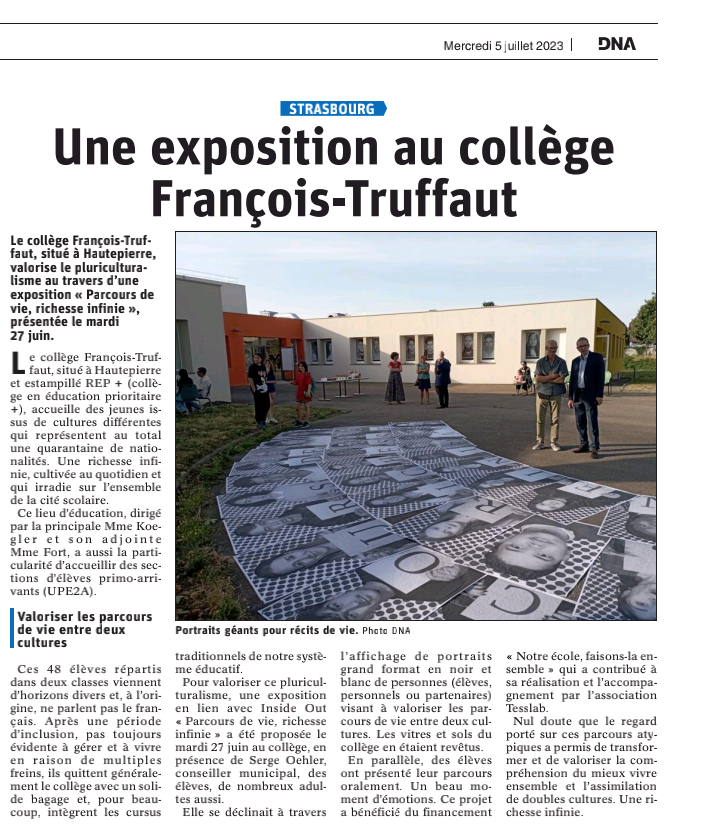 Lire l'article des Dernières Nouvelles d'Alsace (DNA) : Une exposition au Collège François Truffaut